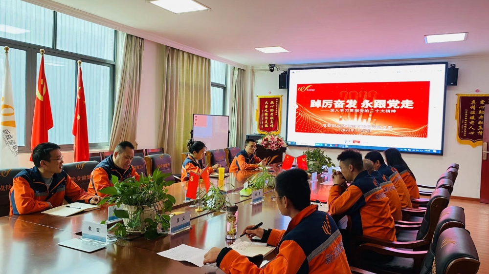 2022年(nian)11月7日,成都新(xin)成儲物流有限公司(si)黨(dang)支部組織全體黨(dang)員、預(yu)備黨(dang)員、入(ru)黨(dang)積極分(fen)子、各(ge)部門負責人參加以“踔厲奮(fen)發 永(yong)跟黨走(zou)”為(wei)主題的集(ji)中學習(xi)。